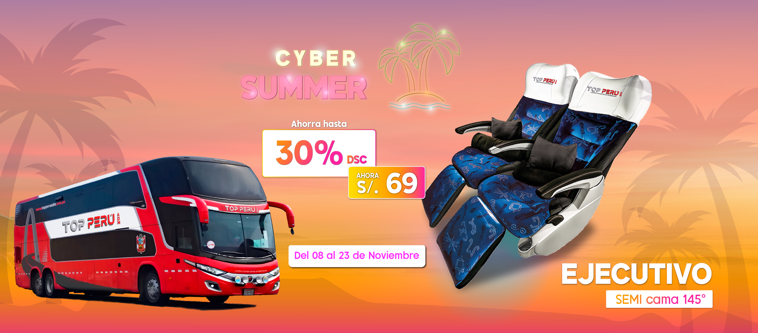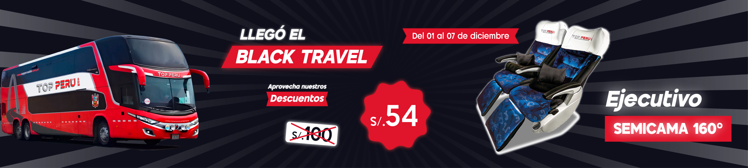 Máximo confort con asientos cama de 180°, streaming (entretenimiento a bordo), cargador usb, rastreo satelital, baño sanitizado y aire acondicionado y un servicio exclusivo.
